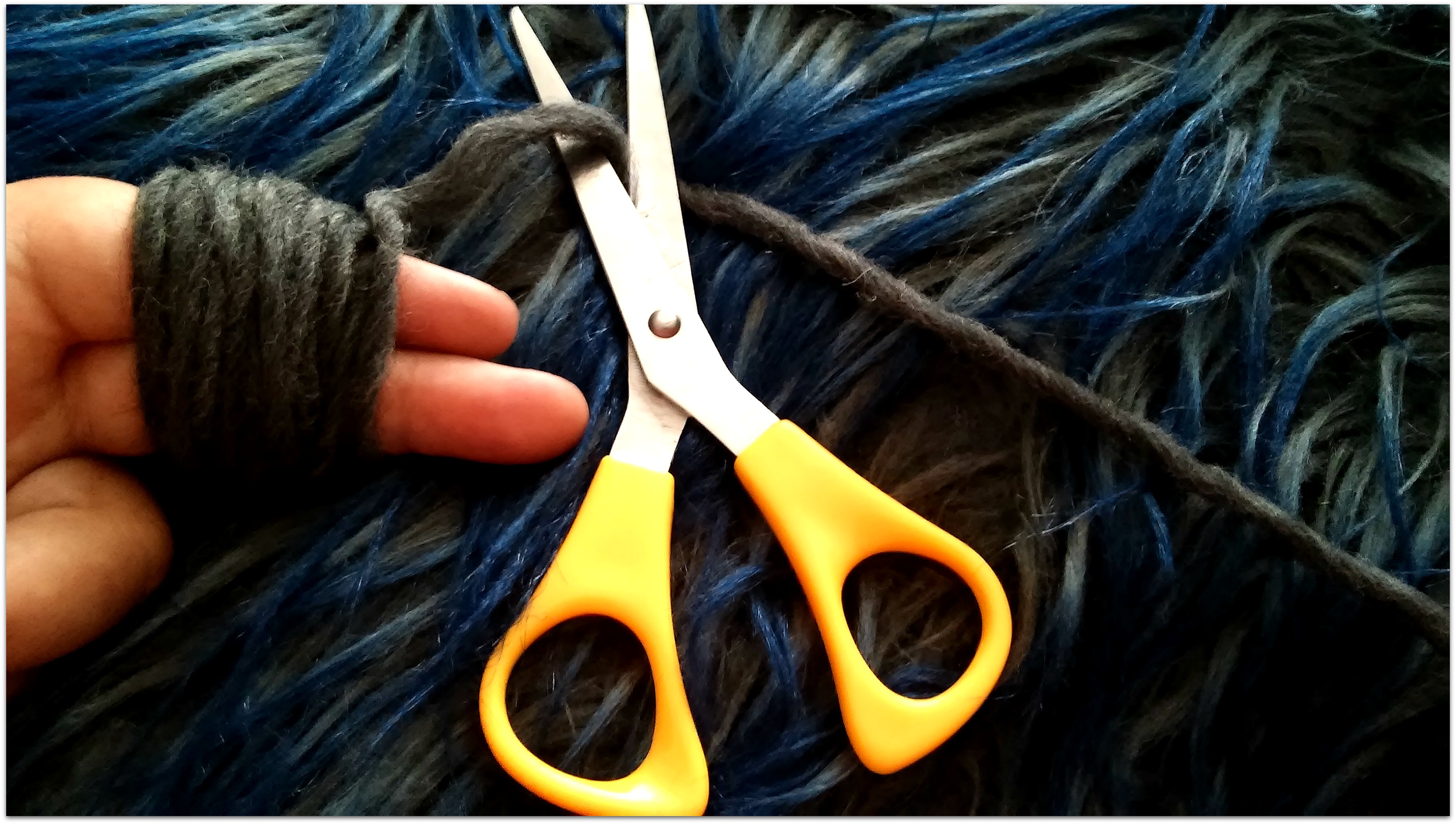 Wrap the wool around two, three or four fingers (depending on the size of pompom you want), and once thick enough, cut off the loose end of the wool.